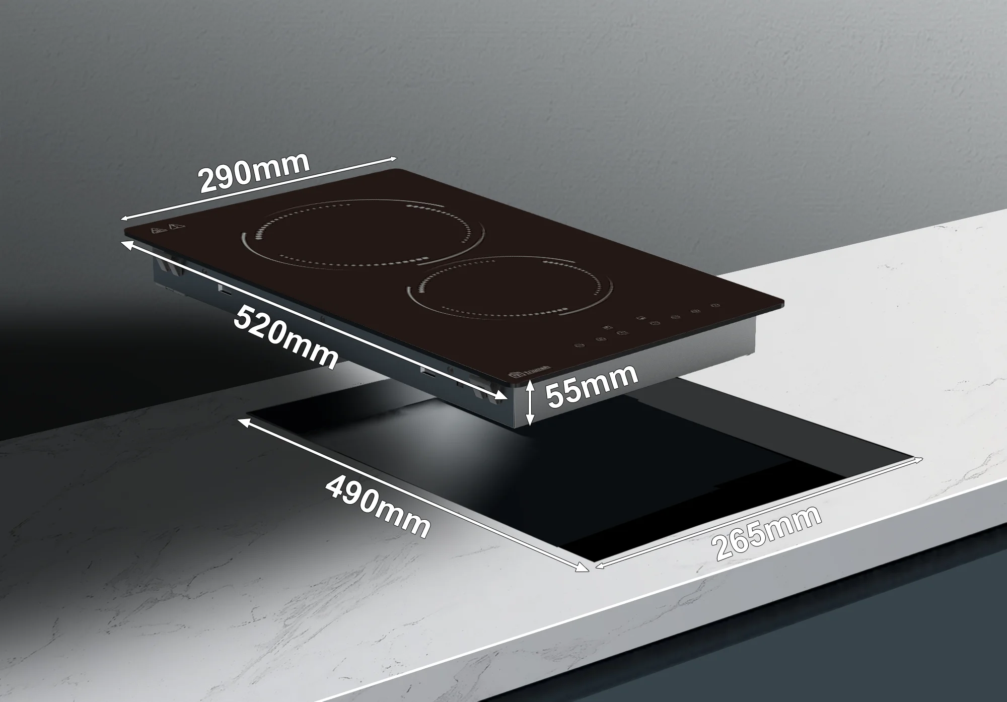 Elle est alimentée électriquement (220-240 V) et offre une surface noire minimaliste qui s’intègre parfaitement à tout type de plan de travail. Grâce à son format Domino (30 cm), elle est idéale pour les studios, petites cuisines ou comme solution d’appoint.